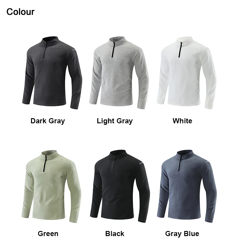 Men's Stand Collar Long Sleeve Sport Shirts Breathable Outdoor Running Fitness Polo Shirt Hiking Sport T-shirts