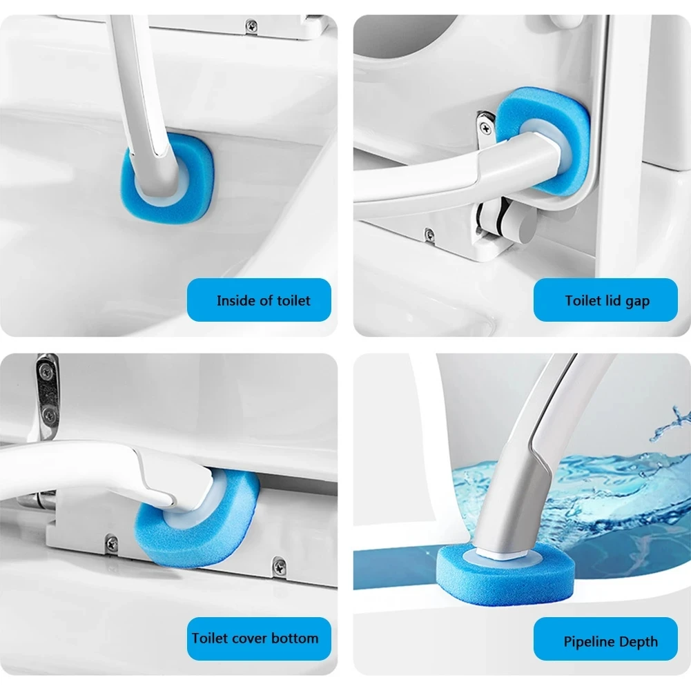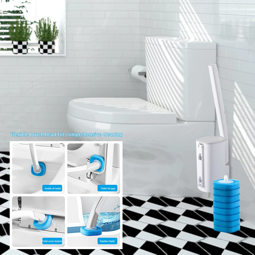 Multi-Purpose Bathroom Cleaning System Long Handle Disposable Toilet Bowl Brush Cleaner Set with Disposable Sponge Refills
