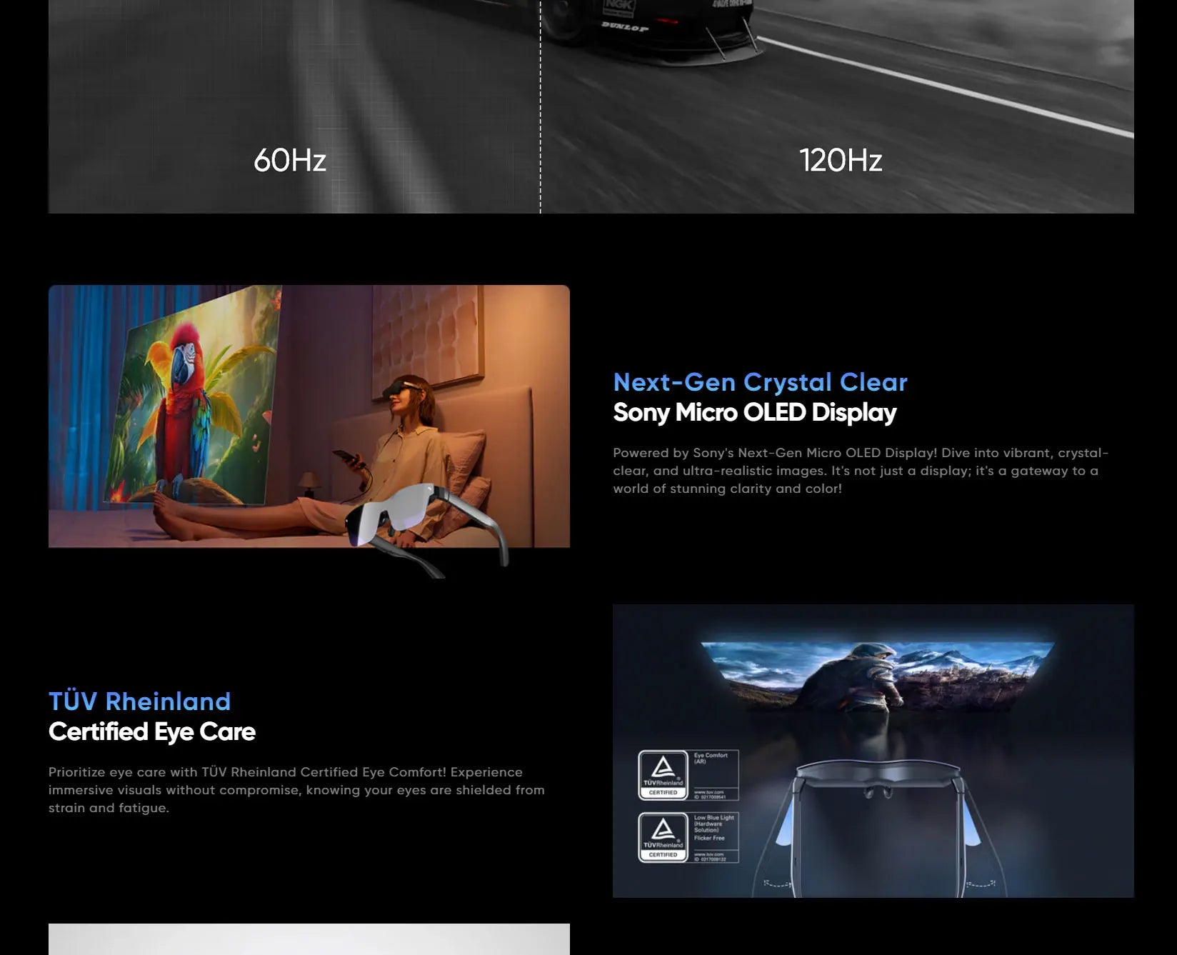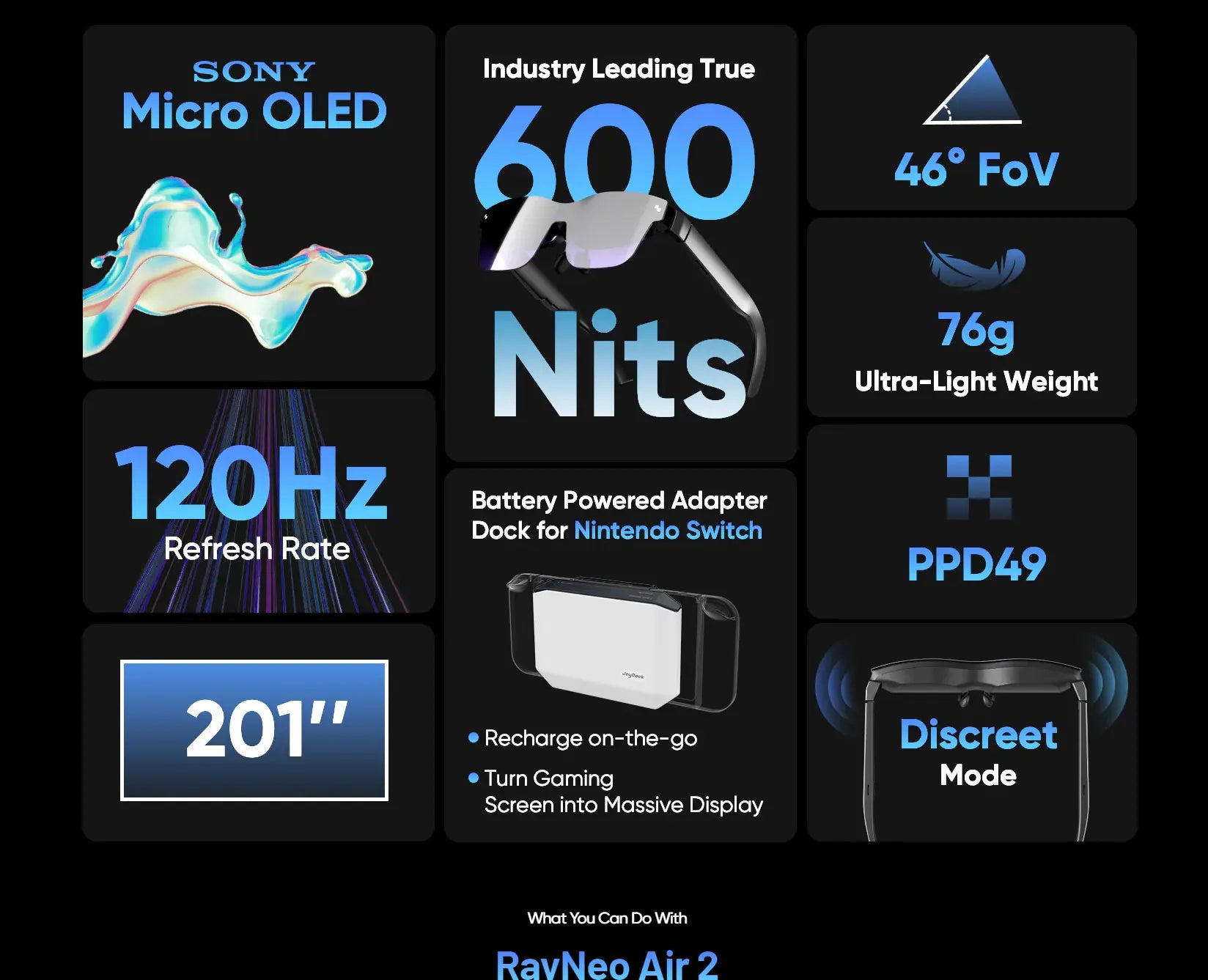 NEW 2024-2025TCL Rayneo Air 2 Smart AR Glasses 201 inch Giant Screen Viewing for iPhone Android Phones Computer Switch Steam Deck PS5