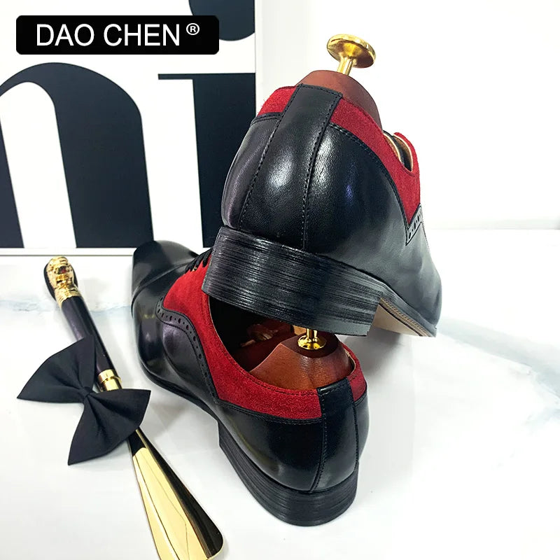 NEW 2024 LUXURY MEN'S OXFORD SHOES LACE UP BLCK MIXED RED SUEDE CASUAL MENS DRESS SHOES REAL LEATHER OFFICE WEDDING SHOES FOR MEN