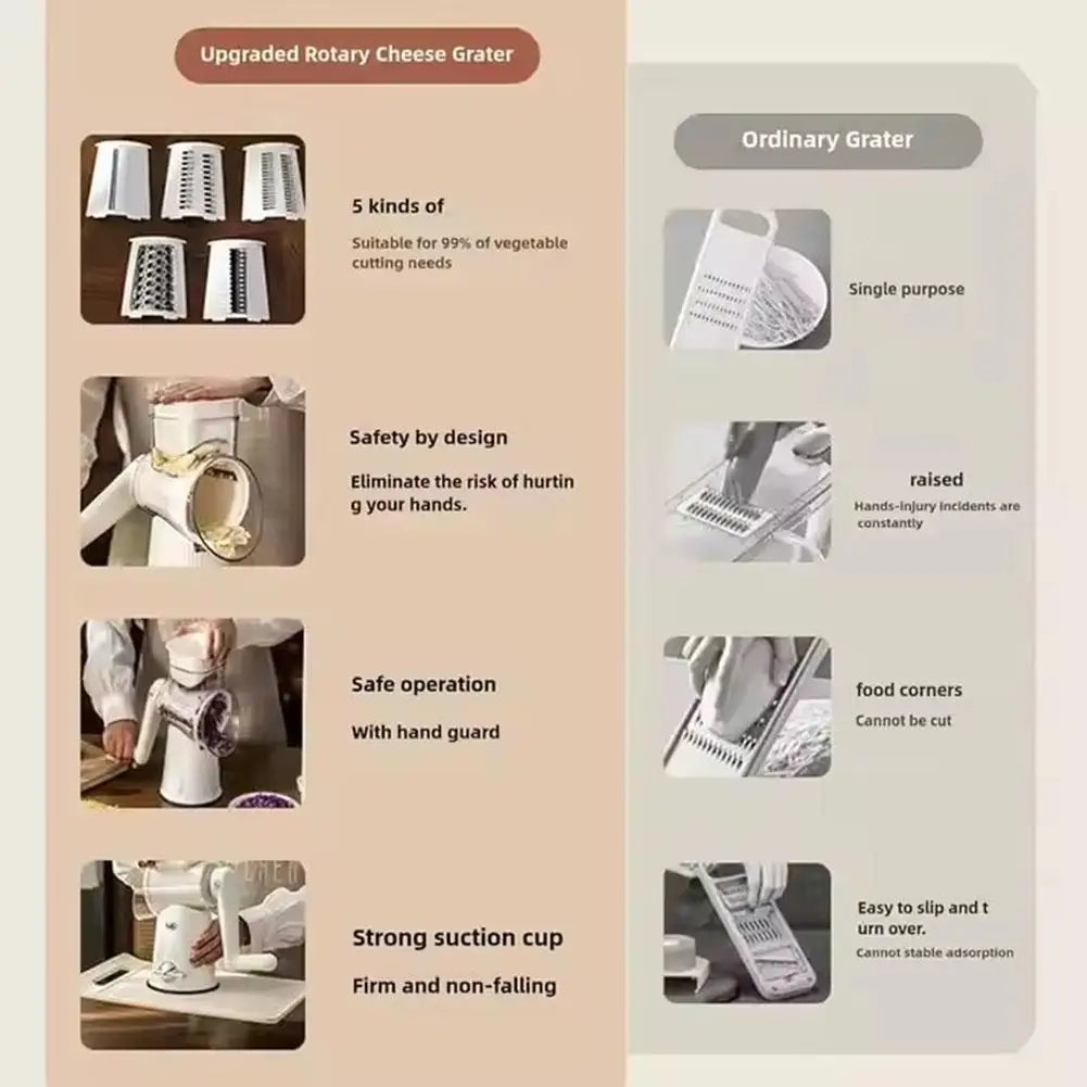 New 2025 5 In 1 Rotary Cheese Grater With Handle Manual Vegetable Graters Shredder Slicer Nuts Grinder With Strong Suction Base