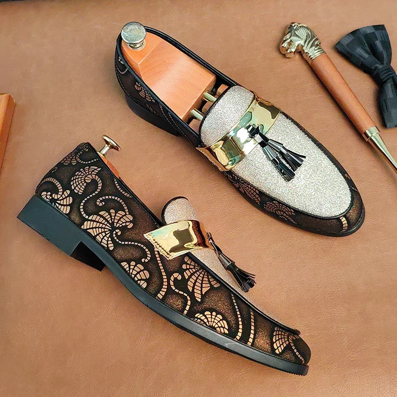 New 2025 Loafers for Men Flock Embroider Tassel Casual Shoes Slip-On Breathable Handmade Mens Dress Shoes Size 38-47