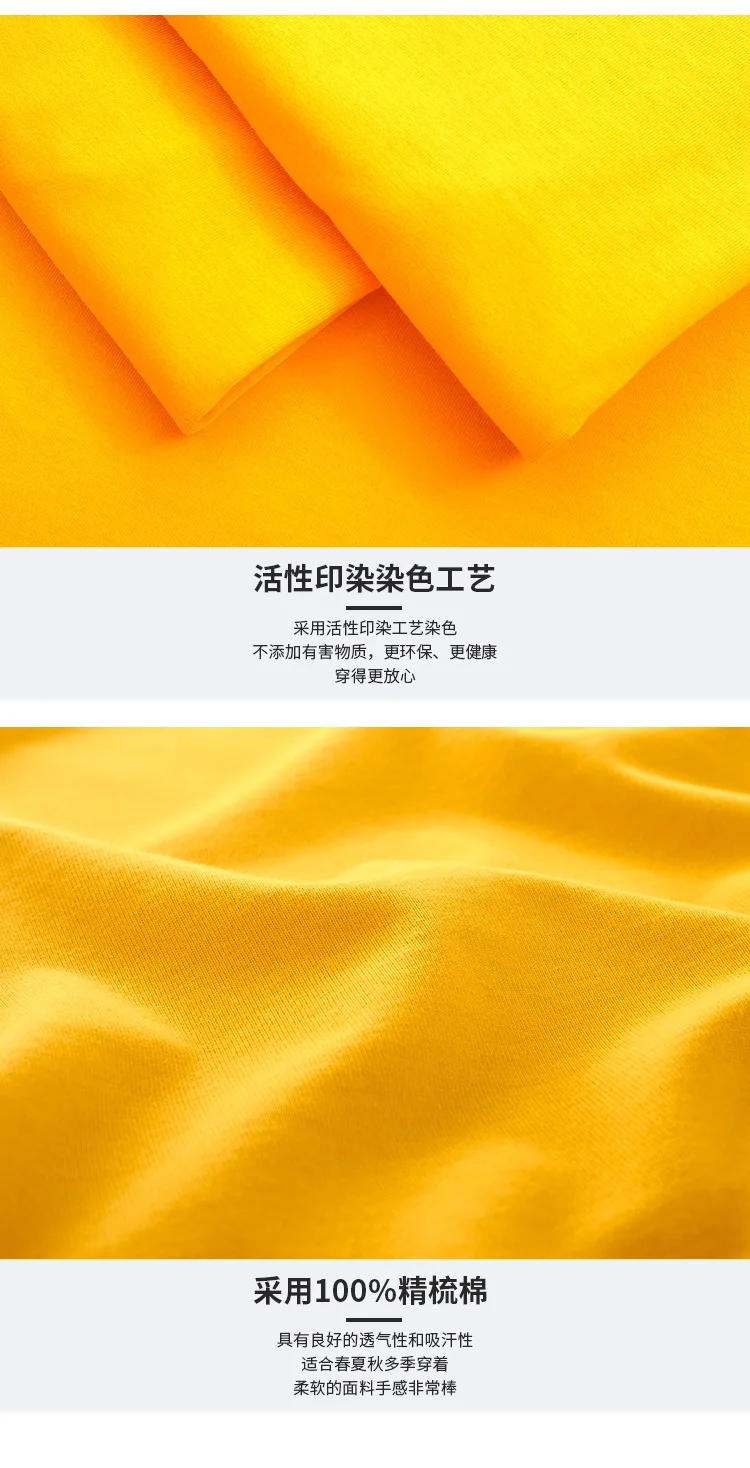 New American Style Fleece Mens Long T-Shirts Full Sleeve Gym Oversize T-Shirt Custom 270G Yellow T-Shirt 100% Cotton
