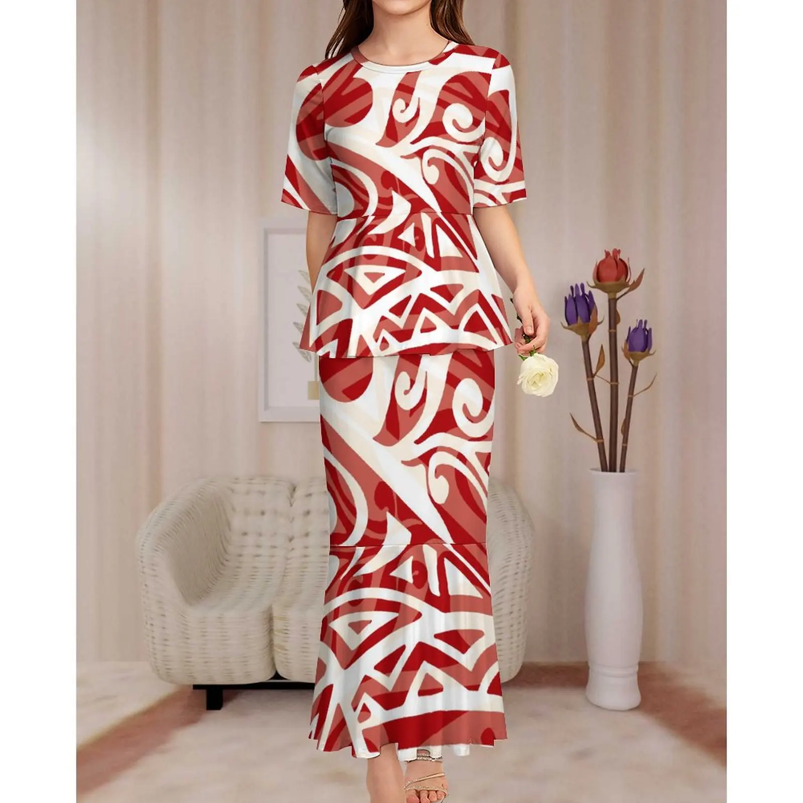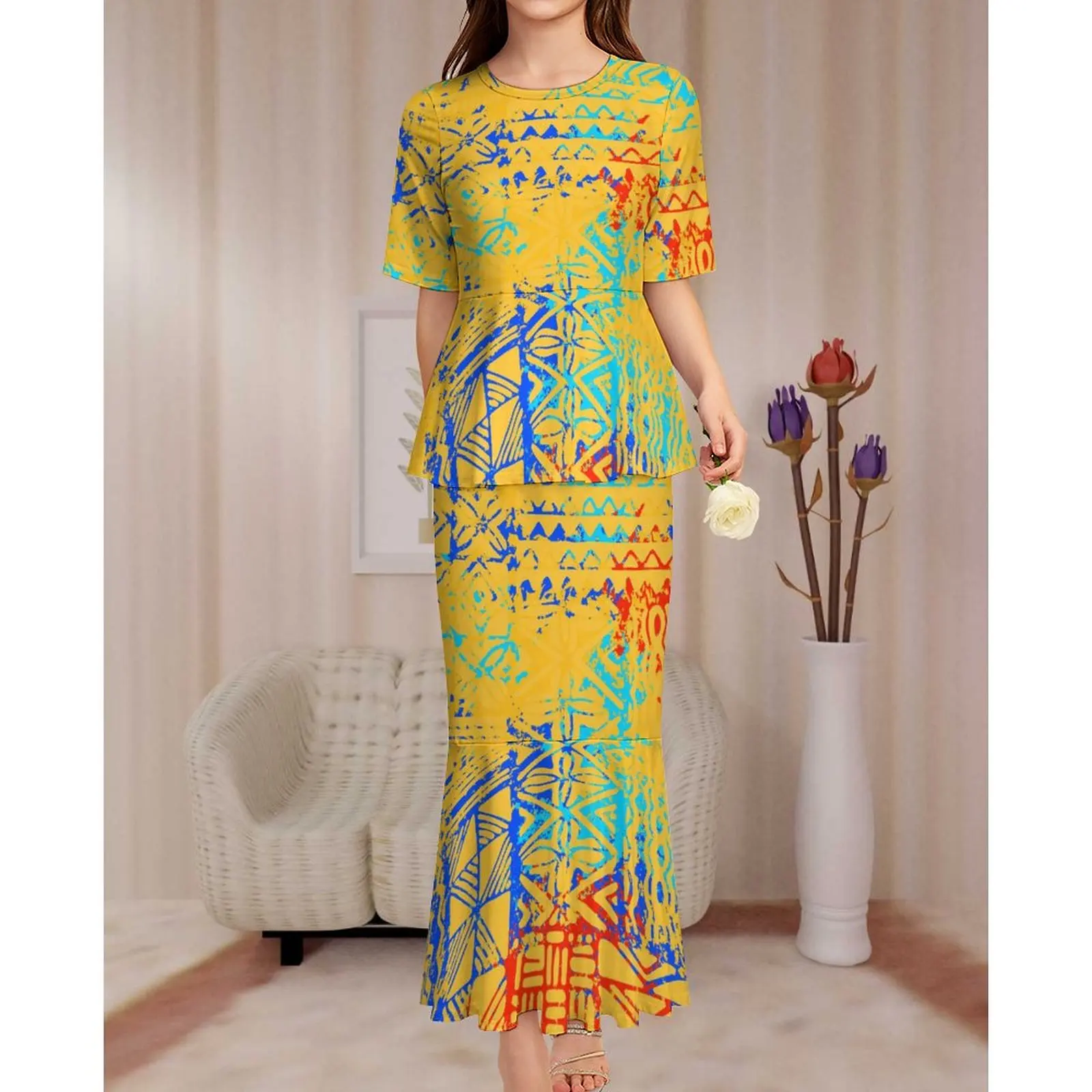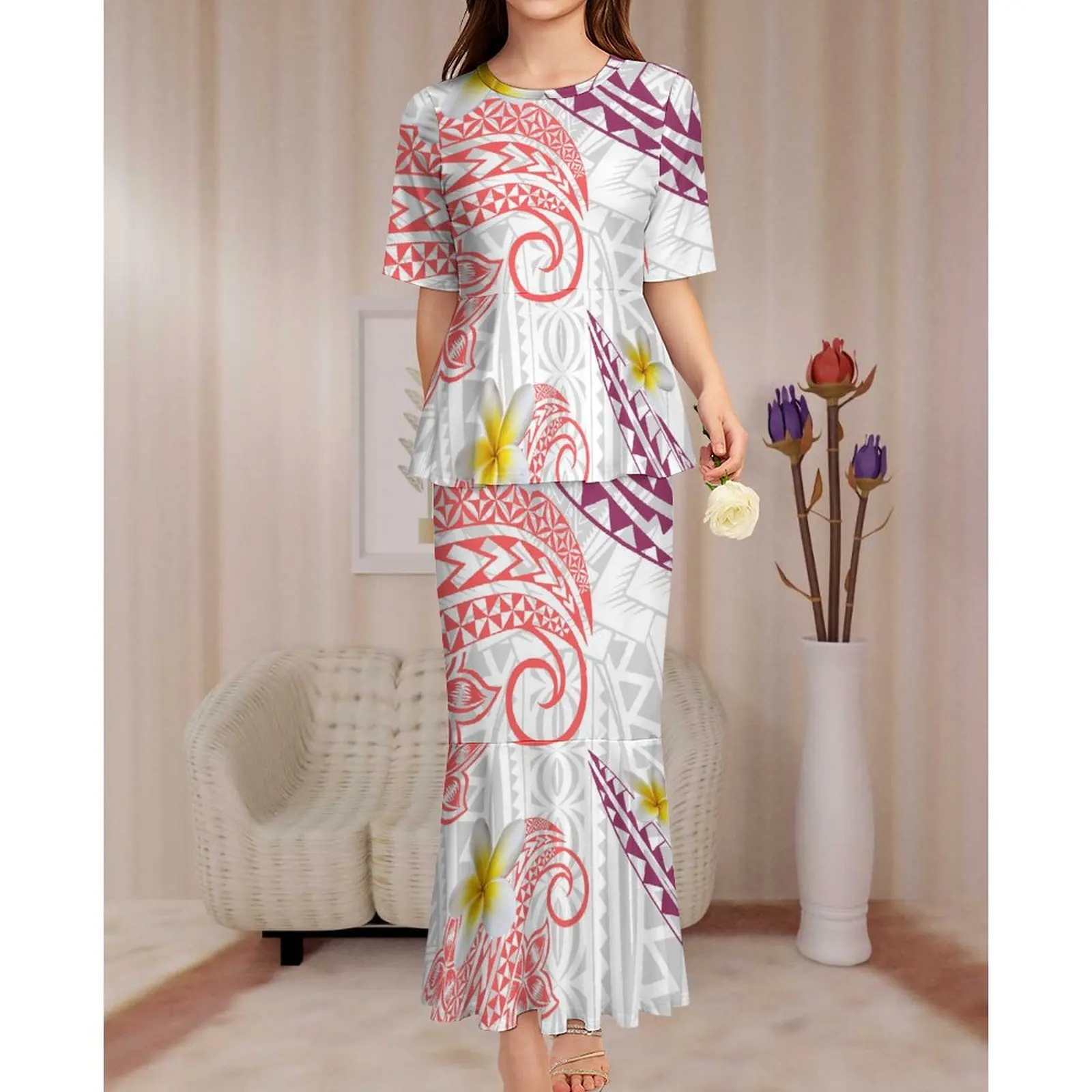 New Arrival 2023 Summer Tapa Print kids clothes Mermaid Dresses Set Polynesian Tribal Samoan Puletasi Dress For Girl