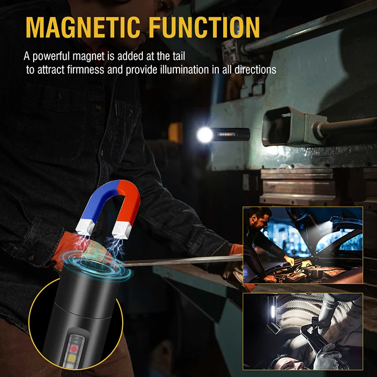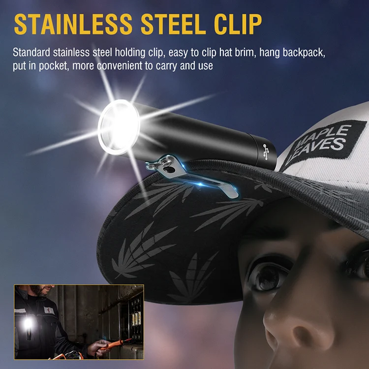 7. Tail with magnet 8. With clip can be used as hat lamp 9. USB C fast charging 10. Lamp head rotatable