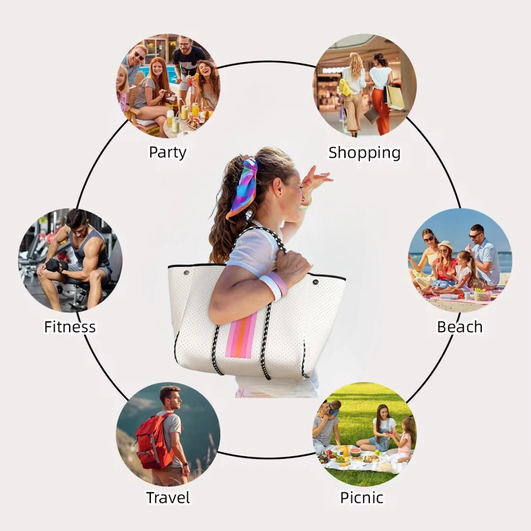 New Arrival Hot Selling Neoprene Tote Bag Wholesale Women Large Shopping Handbags Perforated Neoprene Beach Bag For Women