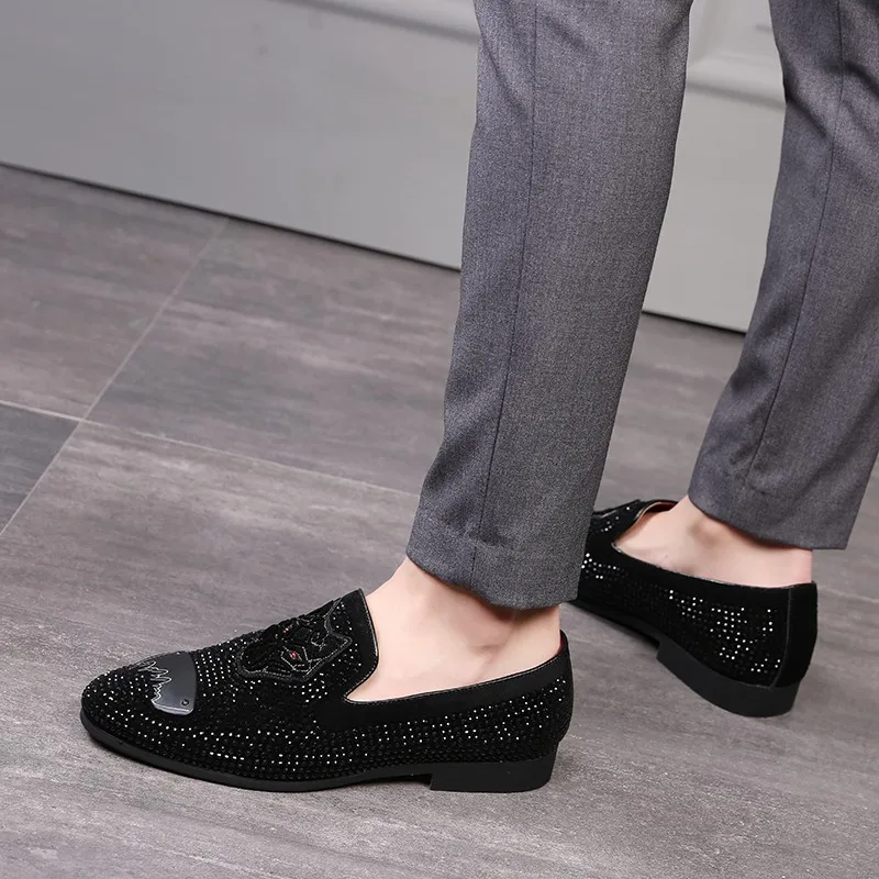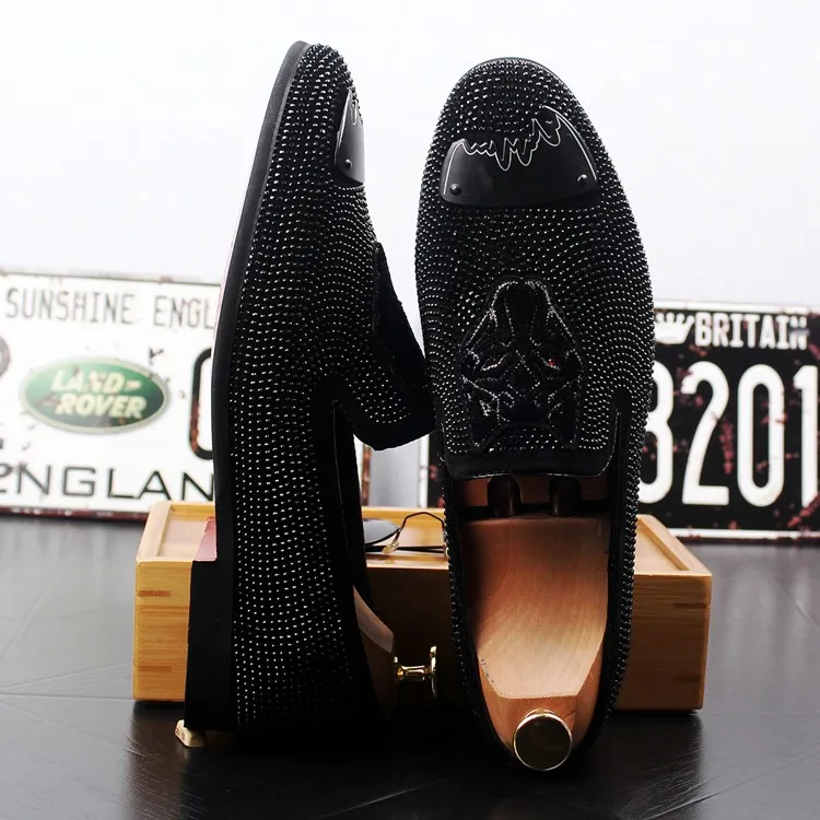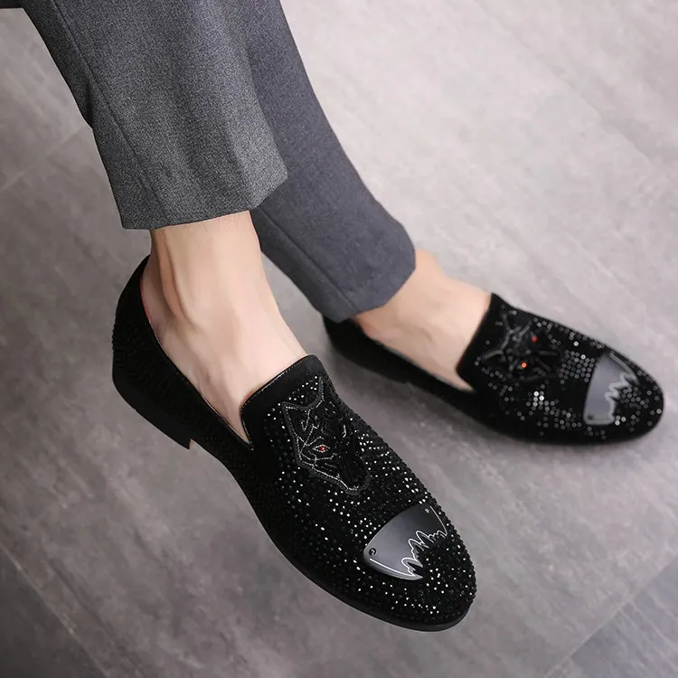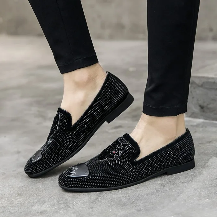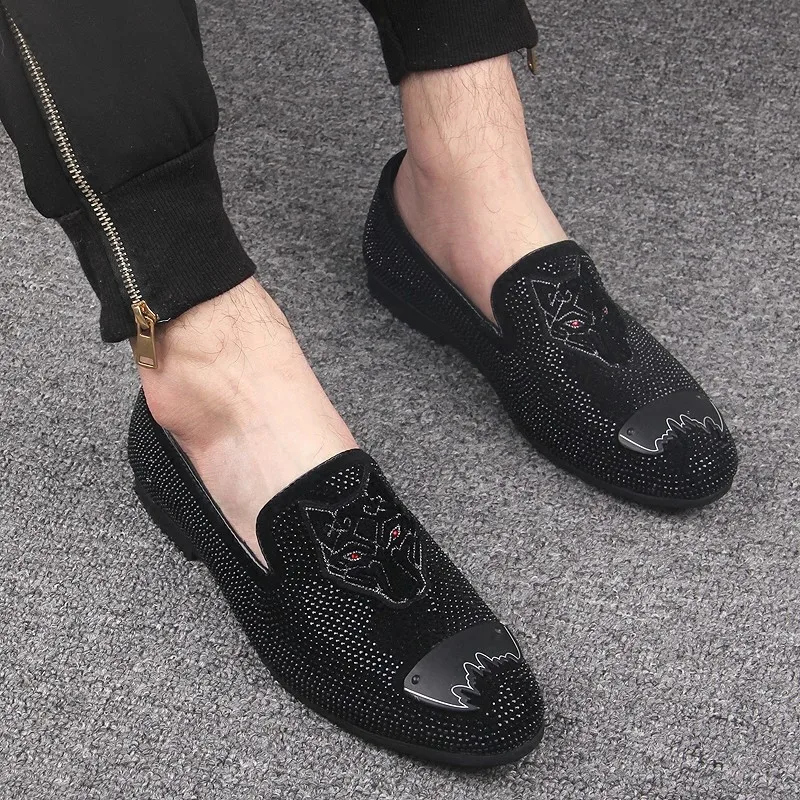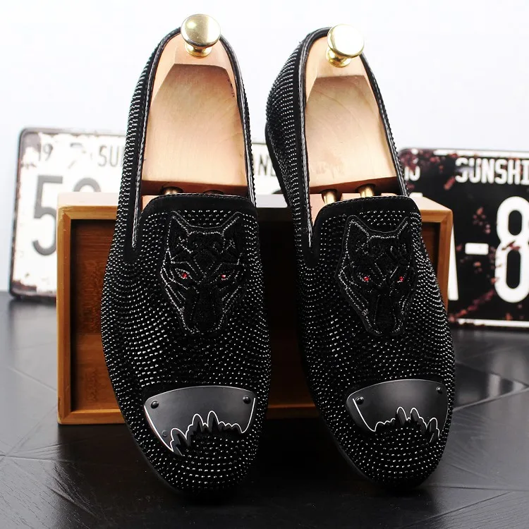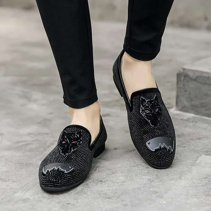 New Arrival men's shoes leather Fashion Wolf Embroider Loafers Evening Party Dress Formal Black Shoes for Men