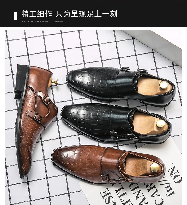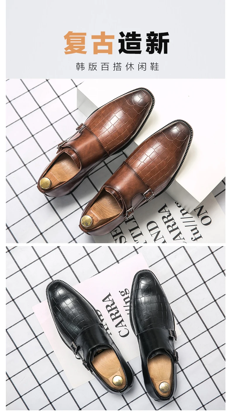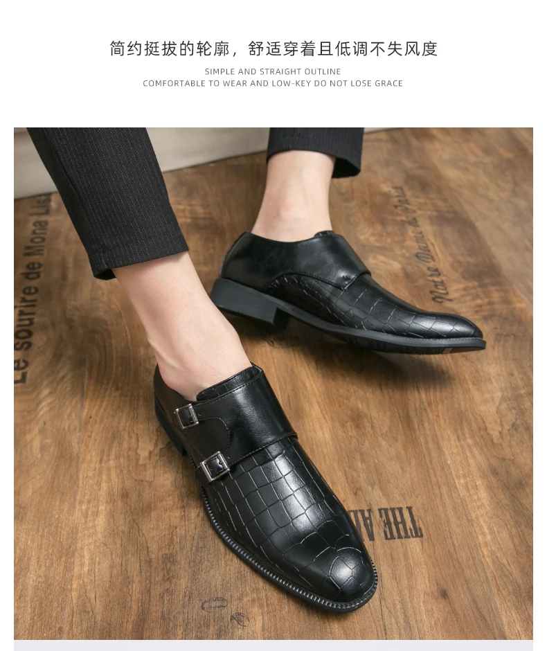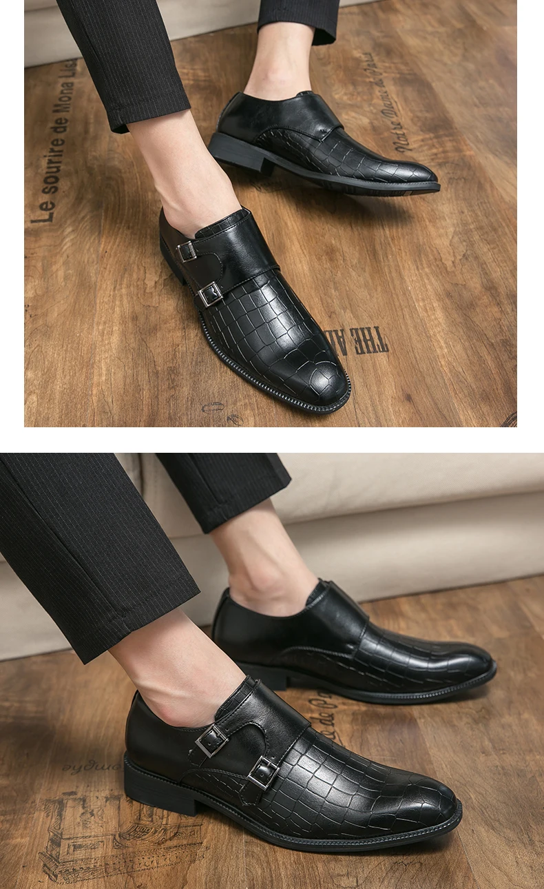 New Fashion Crocodile Pattern Business Flat Dress Shoes Double Monk Strap Shoes Gentlemen Footwear Men Leather Loafers In Stock