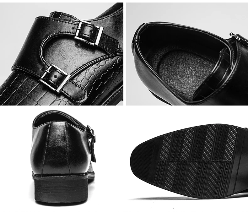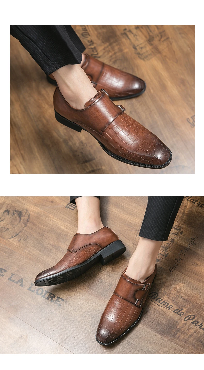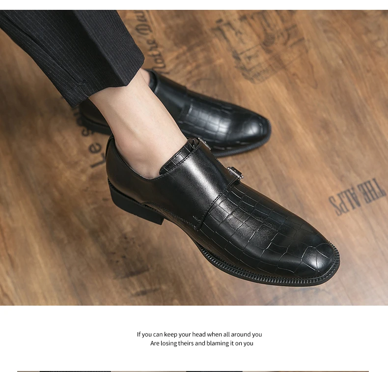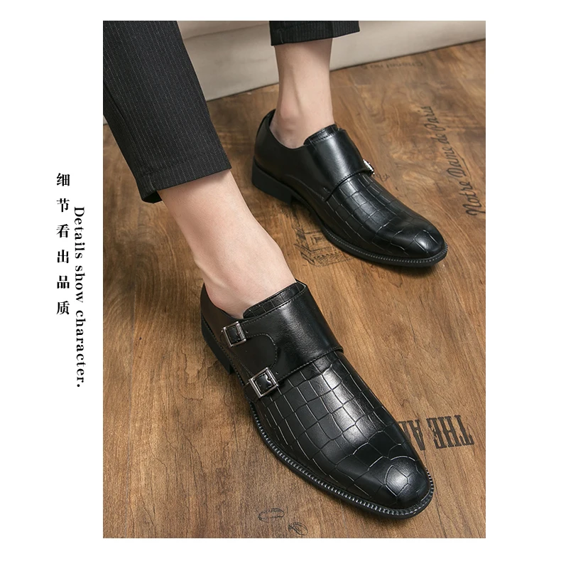 New Fashion Crocodile Pattern Business Flat Dress Shoes Double Monk Strap Shoes Gentlemen Footwear Men Leather Loafers In Stock