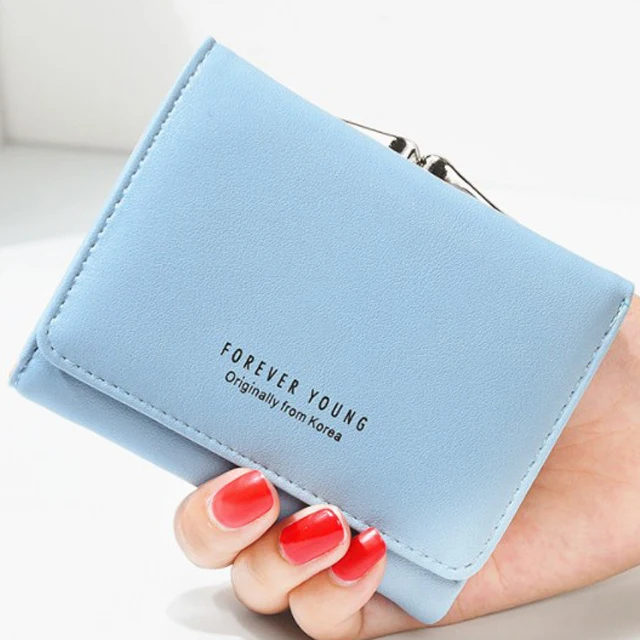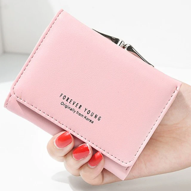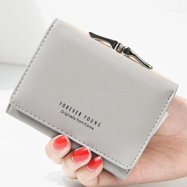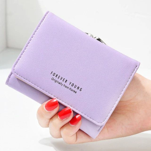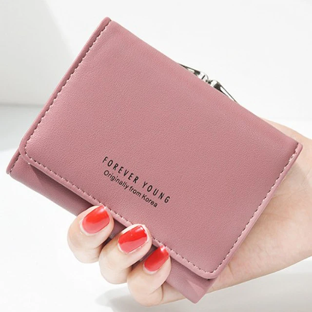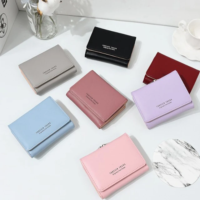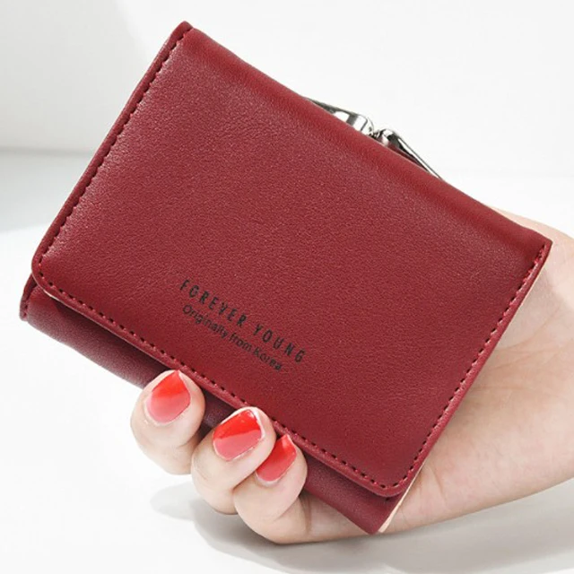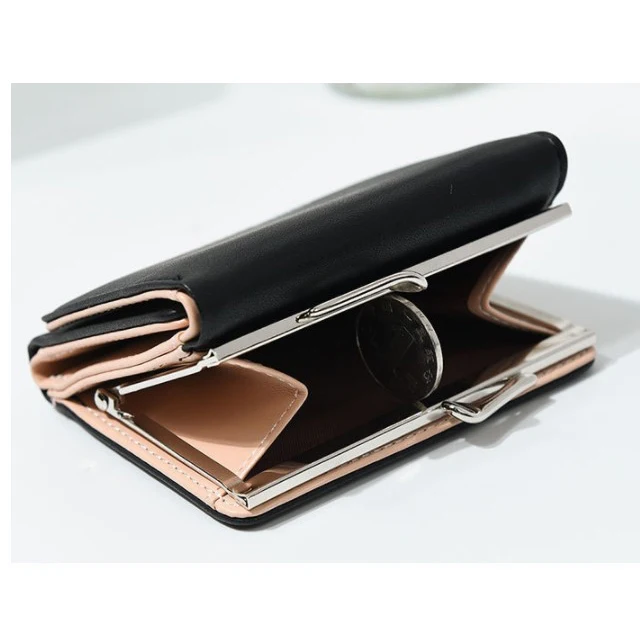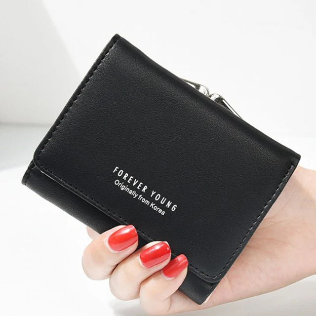 New Lady Short Women Wallets Black Red Color Mini Money Purses Small Fold PU Leather Female Coin Purse Card Hold