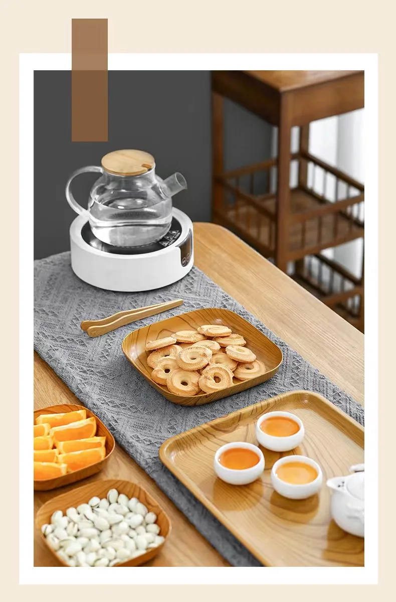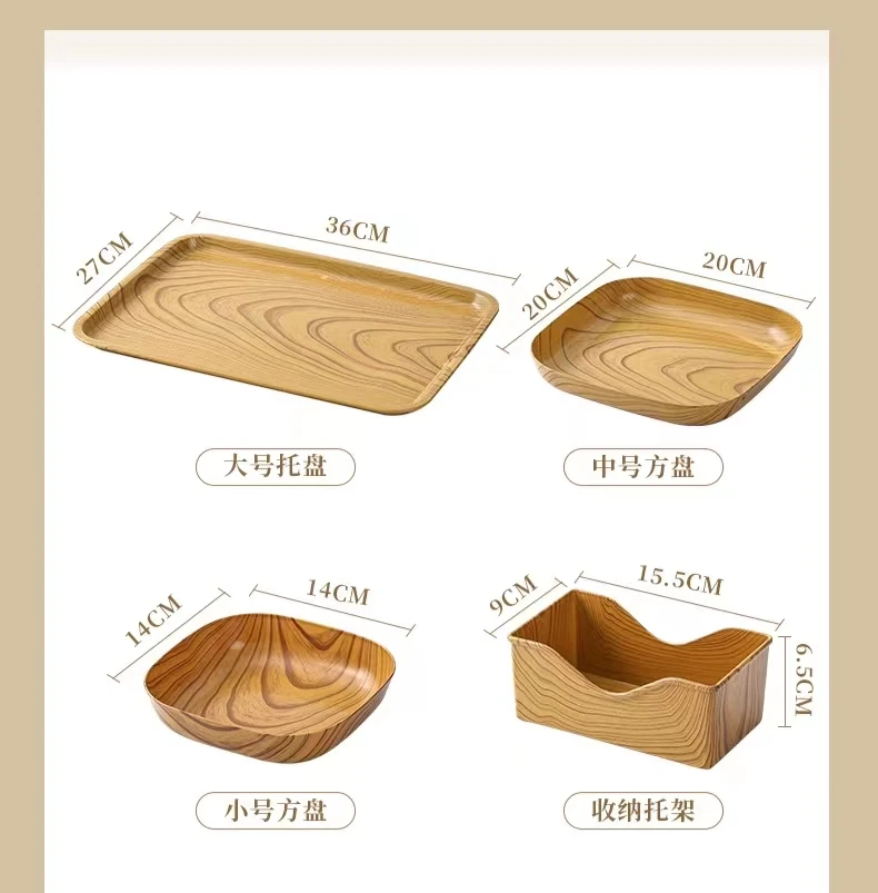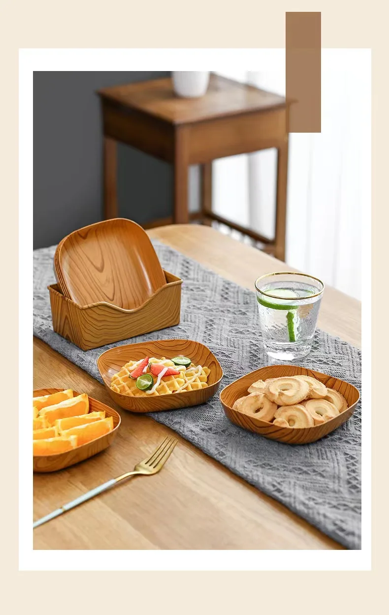 New luxury creative wood plastic spit bone dish afternoon snack tray wood dish high value fruit plate