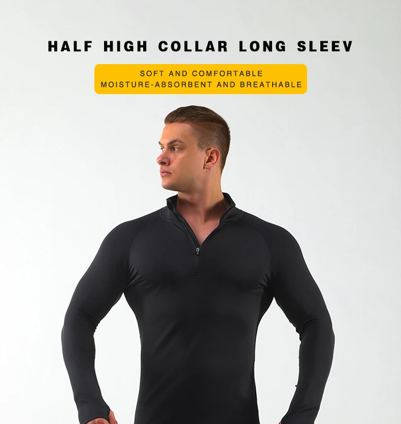 New Spring Men T Shirts For Solid Color With Long Sleeves Half Zipper Collar Soft Tees For Outdoor Activities
