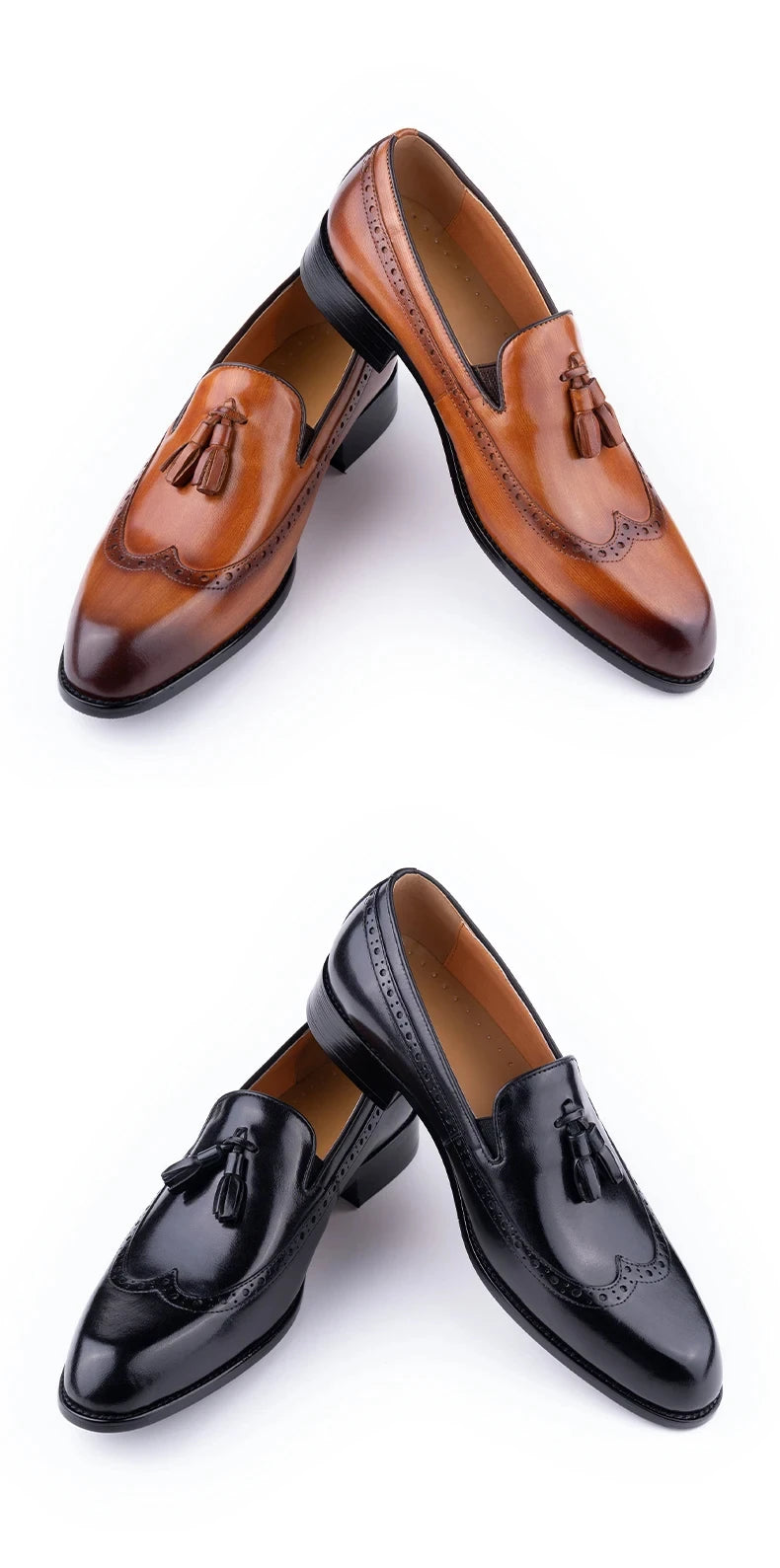 New Style Business Men Loafers Shoes Genuine Cowhide Handmade Sewing Casual Formal Wedding Party Slip on Pointed Dress Shoes Man