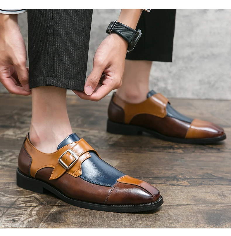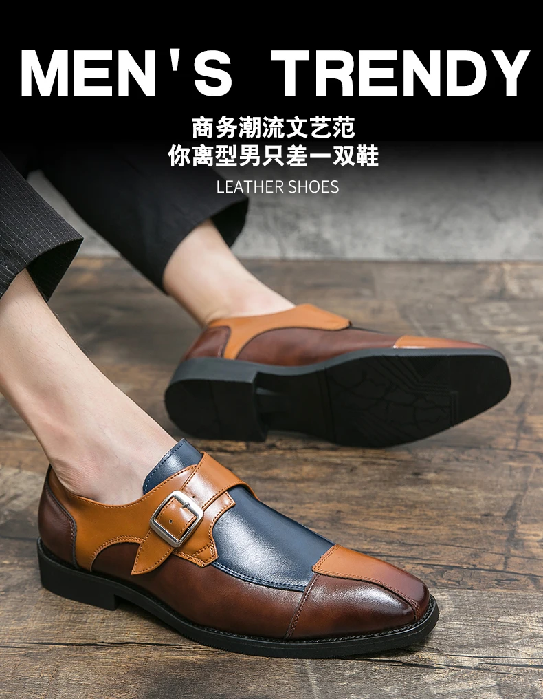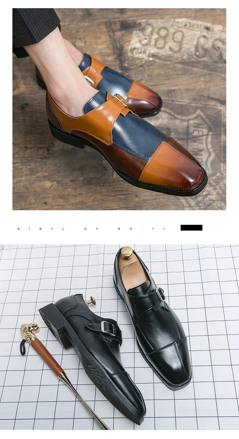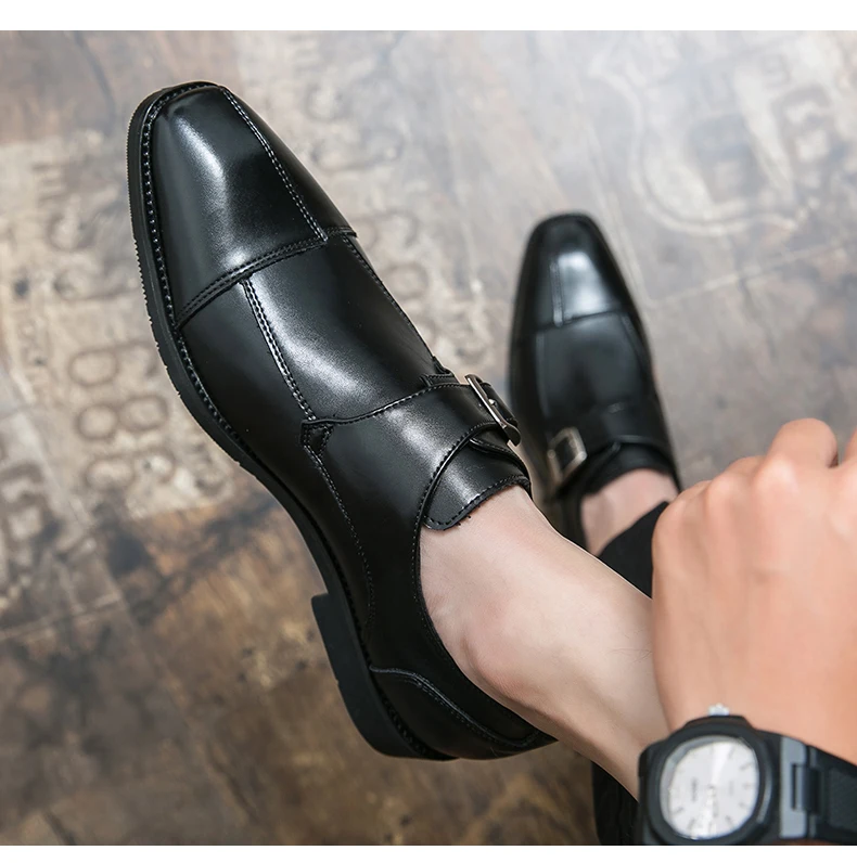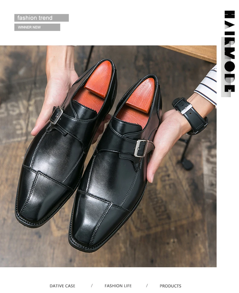 new trend wholesale luxury custom comfortable black monk strap leather men's dress shoes