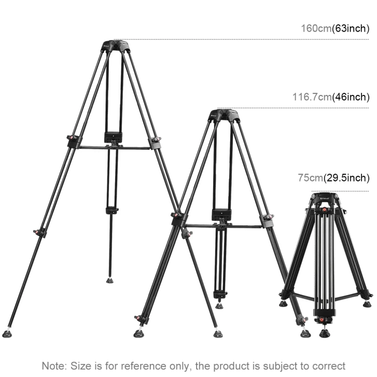 PULUZ Professional Heavy Duty Video Camcorder Aluminum Alloy Tripod for DSLR / SLR Camera, Adjustable Height: 62-140cm